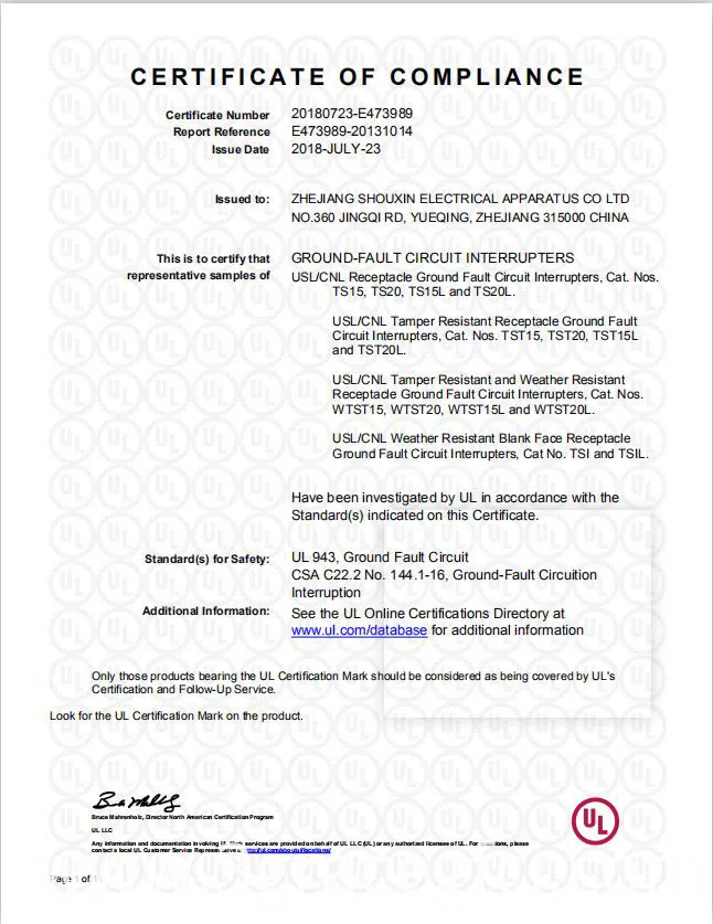 Trimone always value new products development and technological innovation. We take pride in our continuous functional improvement on our safe lock and reverse miswiring protection function protection function than have acquired Chinese invention Patents and Utility Patents. In 2006, we invented a new version of GFCI with auto-monitoring and end-of-life indication function that complied with UL standard of the US and CUL standard of Canada. In 2015, we upgraded the GFCI with regular self-test function based on latest UL943 standard, which better protect the safety of our users. All our GFCI products are UL and CUL which makes them eligible for United States and Canada markets.